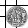 TER // PAVLLVS. Trophäe (tropaeum); r. steht L. Aemilius Paullus in Toga nach l.; links steht König Perseus von Makedonien mit auf dem Rücken gefesselten Händen nach r.; vor ihm seine beiden Söhne. Perlkreis. |
