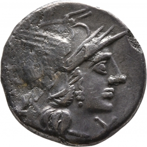 Vorderseite: Kopf der Roma nach r. mit Helm; davor X.